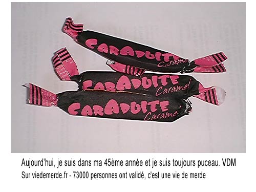 Moi, je dis que Cadbury devrait faire des carambars pour adultes. Ils pourraient même mettre des anecdotes de Viedemerde.fr à l'intérieur.