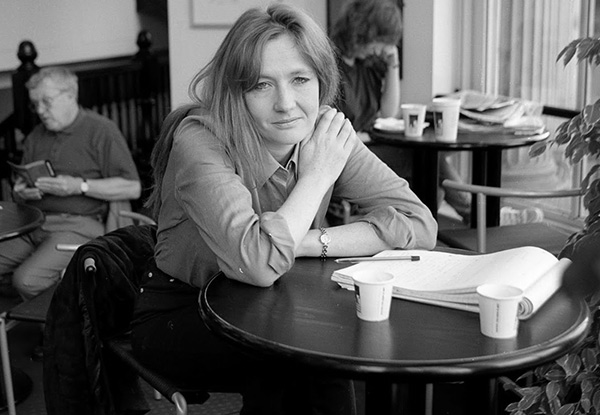 Mais celle-ci, celle de 1998, Jo Rowling, mal coiffée, qui sort de dépression, mère célibataire, qui n'a qu'un stylo et un bloc note pour travailler.