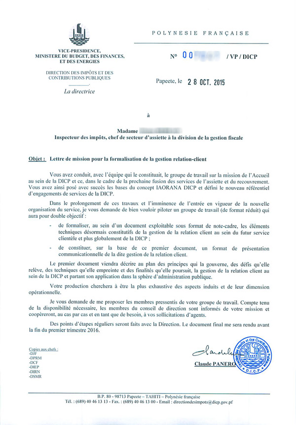 Vous voulez voir à quoi ressemble une lettre de mission émanant de la directrice des impôts ?